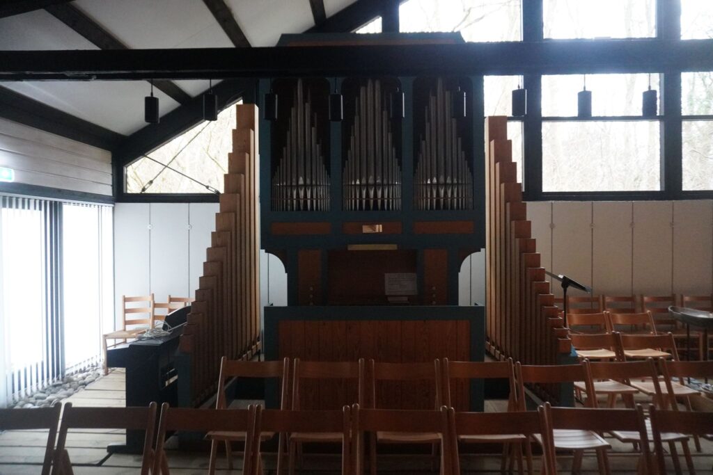 Noget af det første man obseverer når man træder ind i kirkerummet, er det store orgel, som man kan se fra siden. Det har fem stemmer, og er en gave fra orgelbyggeren Frede Aagaard