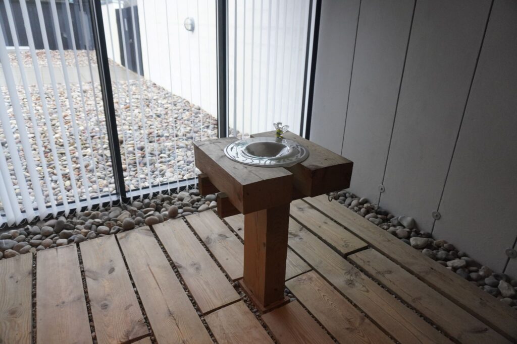 Kirkens bygninger, som er inspireret af hvide ladebygninger, huser i dag, udover selve kirkerummet, også et mødelokale, og et kapel.