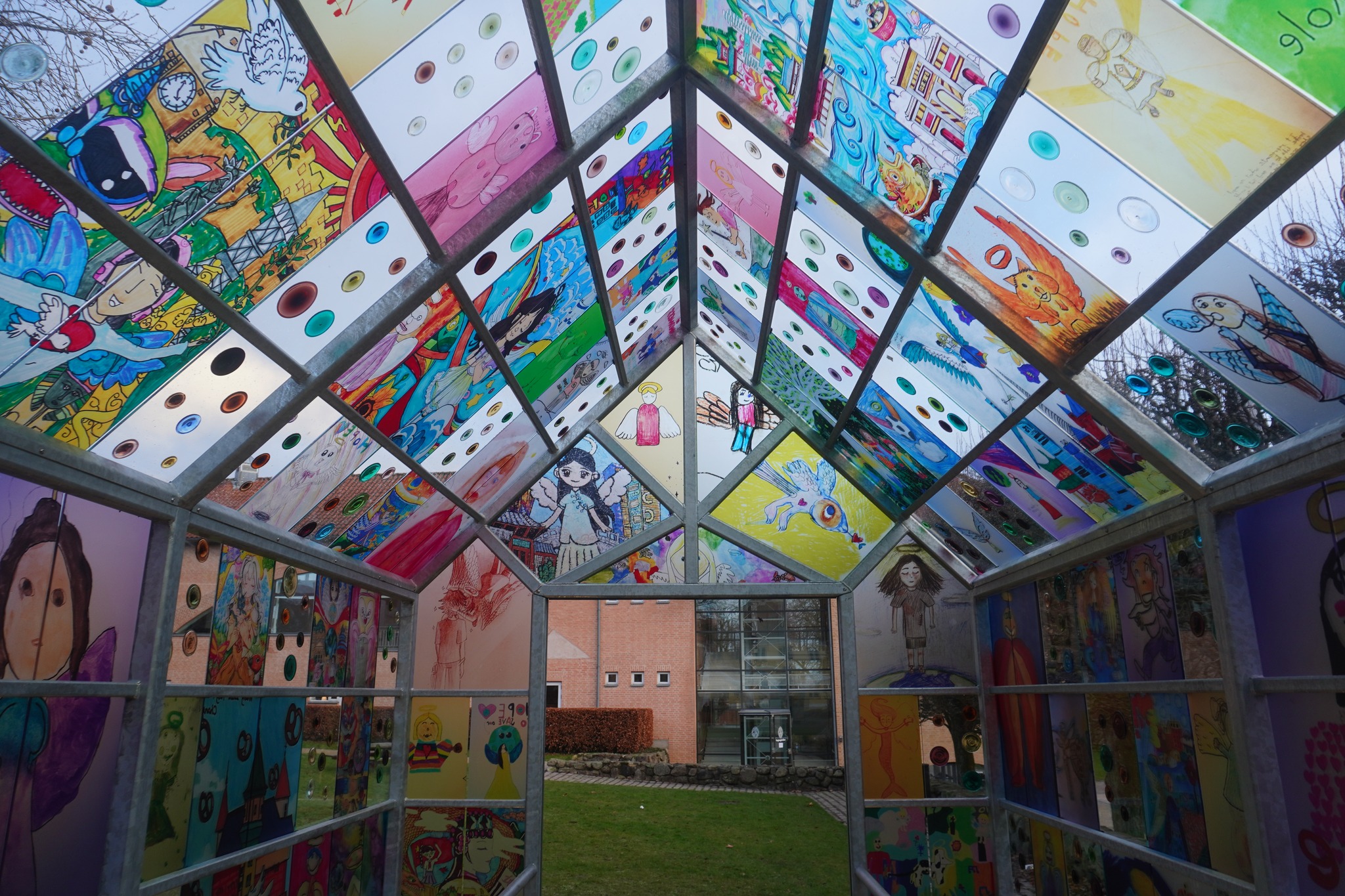 Tæt ved Viborg Domkirke er der opstillet en glasinstallation, som er dekoreret med børns tegninger af engle. Her kan du bevæge dig ind i den og få oplevelsen af en guddommelig kraft fra oven.