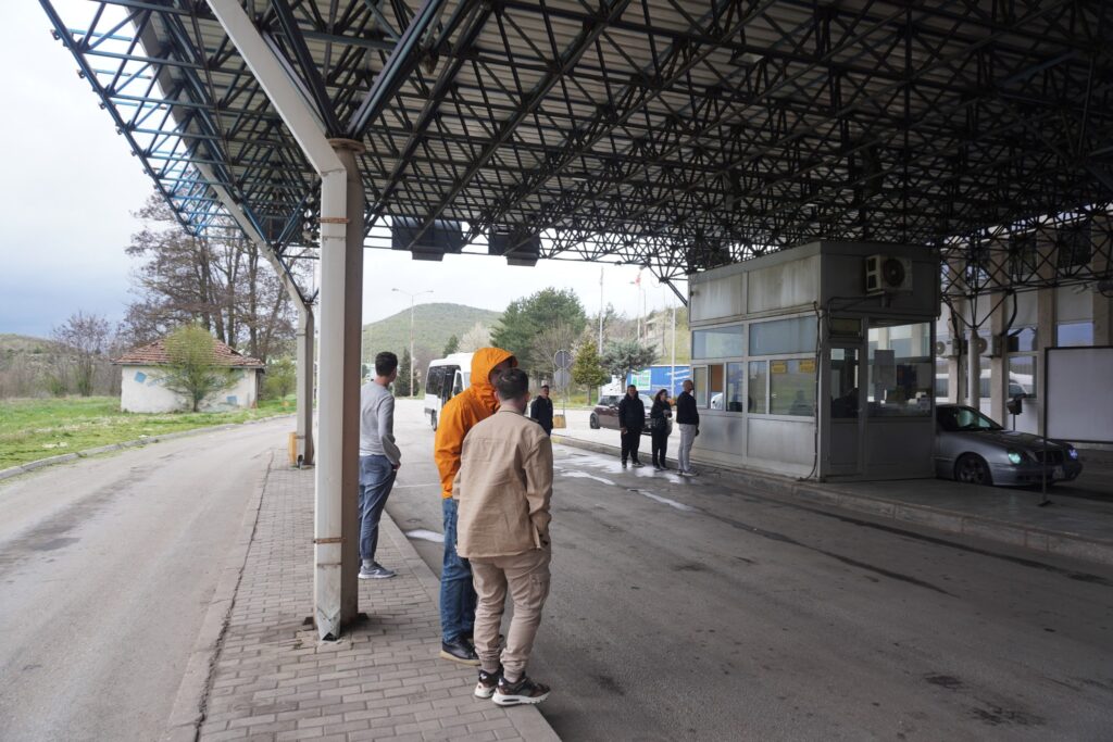 Ved grænsen imellem Albanien og Nordmakedonien, skulle vi først aflevere vores pas/id-kort til grænsepolitiet, inden bussen bakkede baglæns, for derefter at køre ind i en lille hal, der mest af alt lignede et autoværksted.