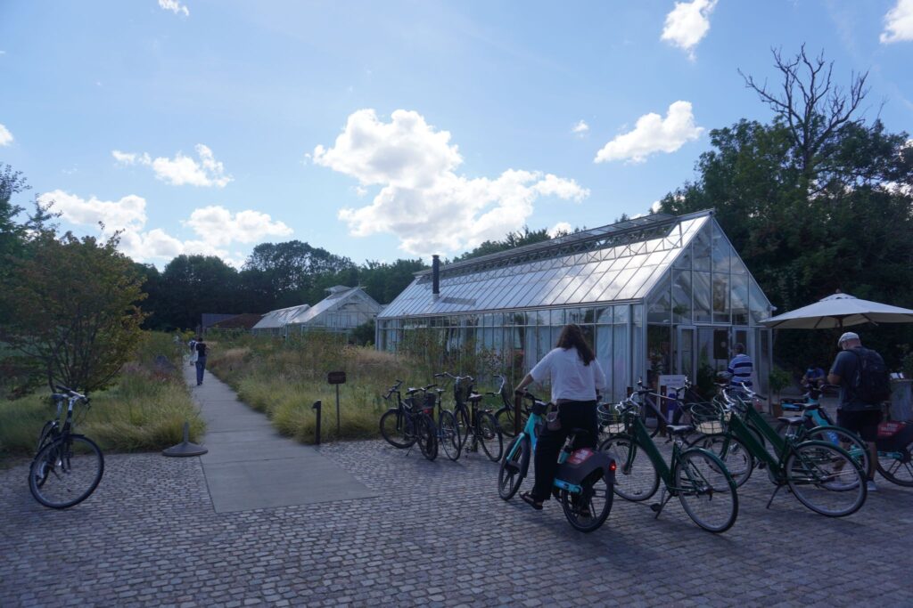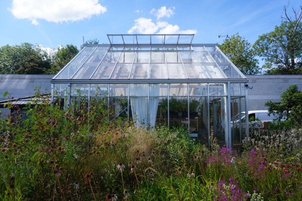 Restauranten består af flere små bygninger eller “pavilloner”, der er forbundet med glasgange og omkranset af grønne områder og urtehaver.