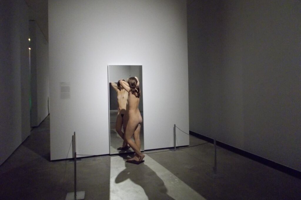 Vi møder også nogle kvinder som betragter sig selv hvordan de ser ud i nøgen figur, hvor brugen af et spejl er et vigtigt instrument.