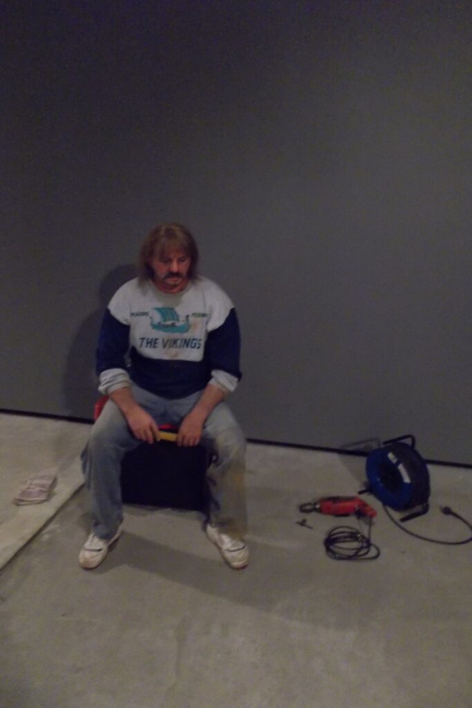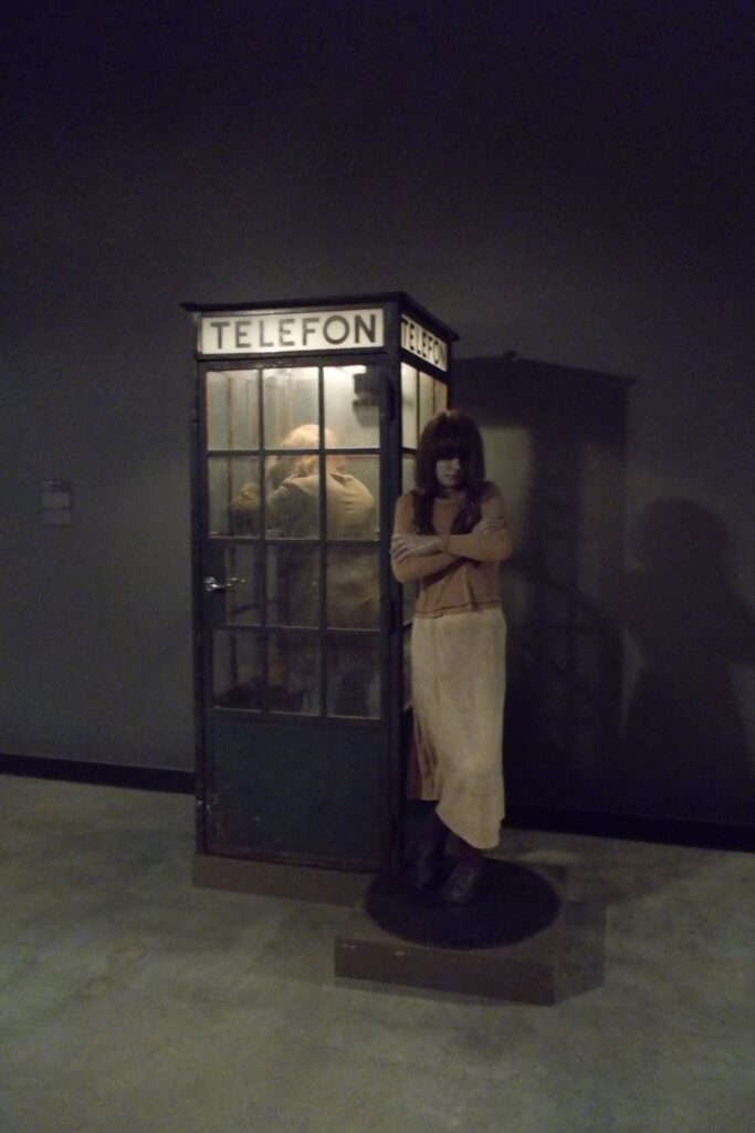 I er andet værk fra 1977 af danske Kurt Trampedach, vises en telefonboks med en mand som taler i mønttelefon, alt imens han spærrer adgangen for en hjemløs kvinde.