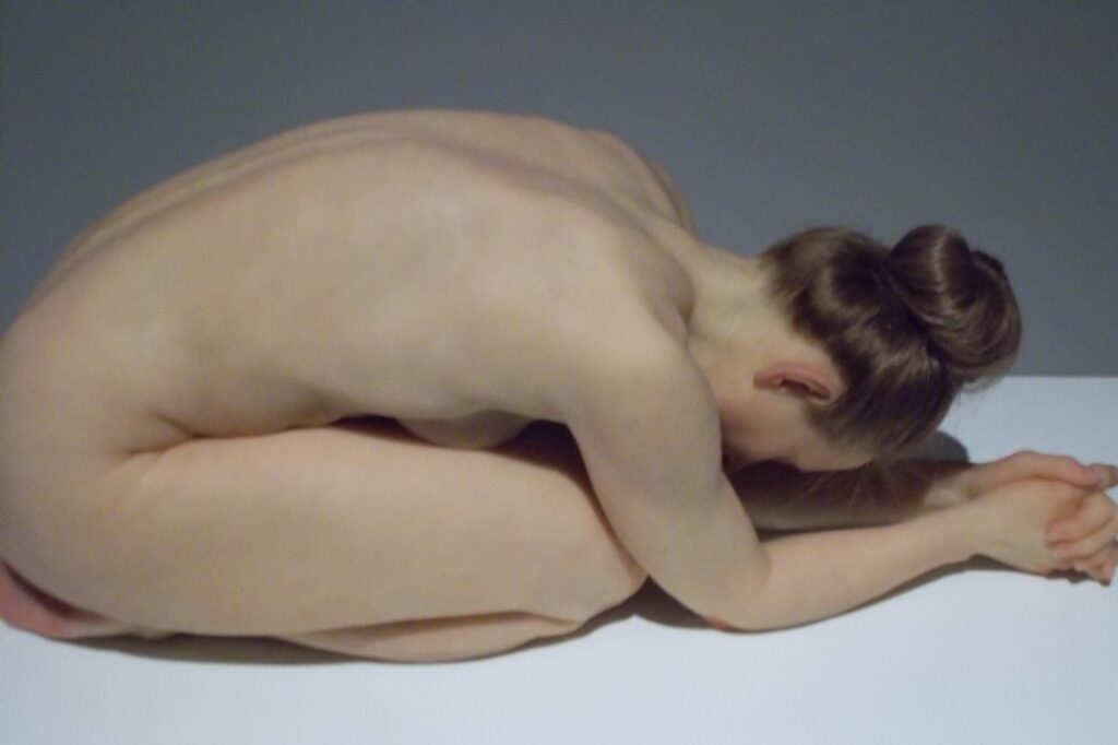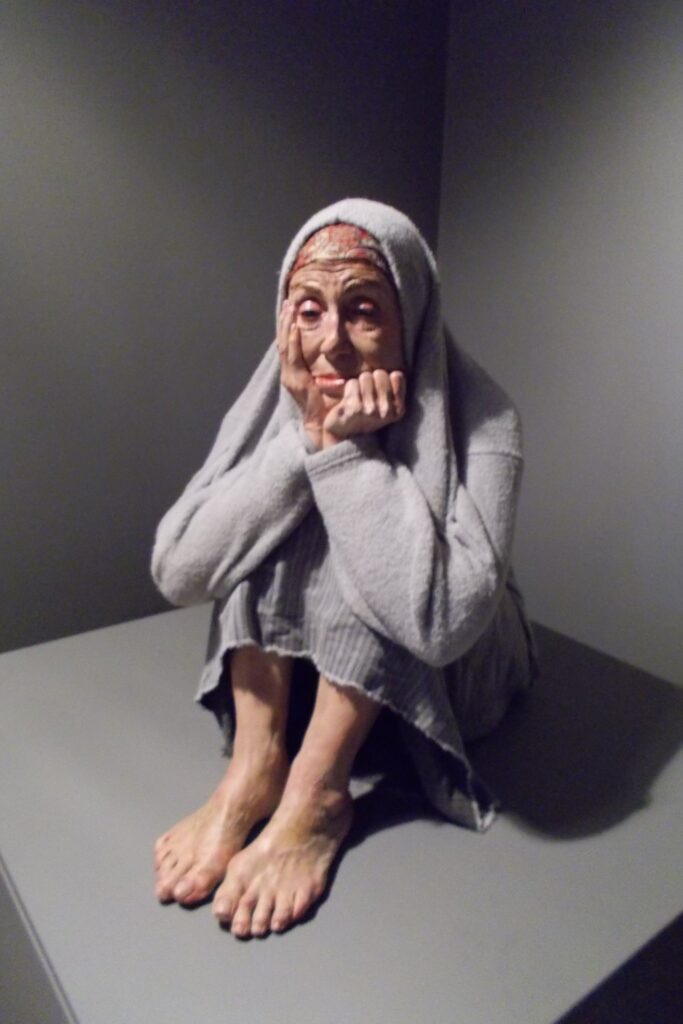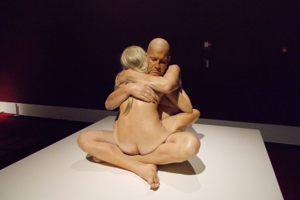 Udstillingens hovedværk er en fem meter lang skulptur af Ron Mieck. I værket “En pige” vises fra 2006 vises en nyfødt spædbarn, som lige har fået klippet navlensnoren over. Og, hvor der er stadig er pletter af blod og fostevæv på det.