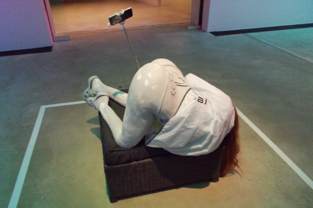 Er det en hyldest eller en satire over nutidens livsvilkår, hvor det ikke bare handler om personen er for tyk, brysterne for små – men også om kussen nu også ser godt ud, som det eksemplevis ses i svenske Anna Uddenbergs værk.