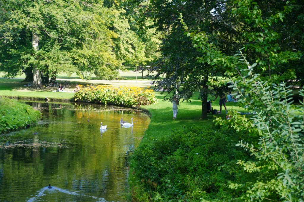 I Frederiksberg Have kan man opleve brede snoede stier, store græsplæner, kanaler og søer, gamle træer samt smukke blomsterbede, mm.