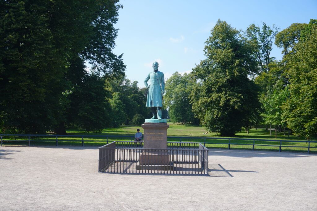 Ved indgangen til Frederiksberg Have står der en skulptur af Frederik VI fordi han spillede en central rolle i havens historie og videreudvikling af den.