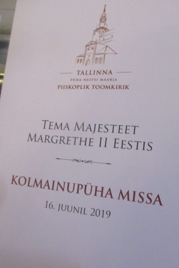 Efter at have deltaget i den første del af gudstjenesten forlod Dronning Margrethe d. 2 sammen med sin delegation Sankt Marie Kirken i Tallinn.