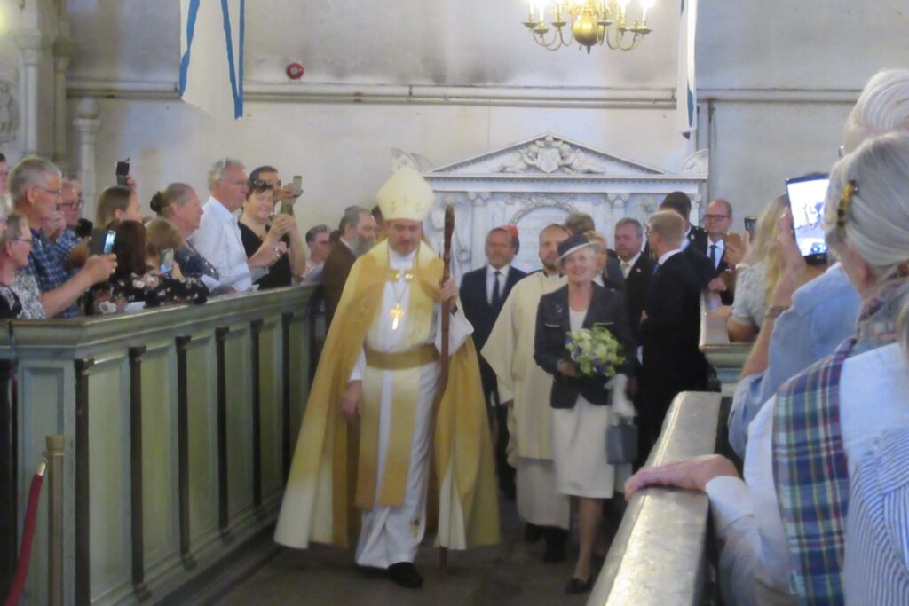 Den danske dronning var sammen med sin følge, der bl.a. bestod af afgående udenrigsminister Anders Samuelsen og tidligere udenrigsminister Uffe Ellemann-Jensen til stede i Sankt Marie kirken i Tallinn.