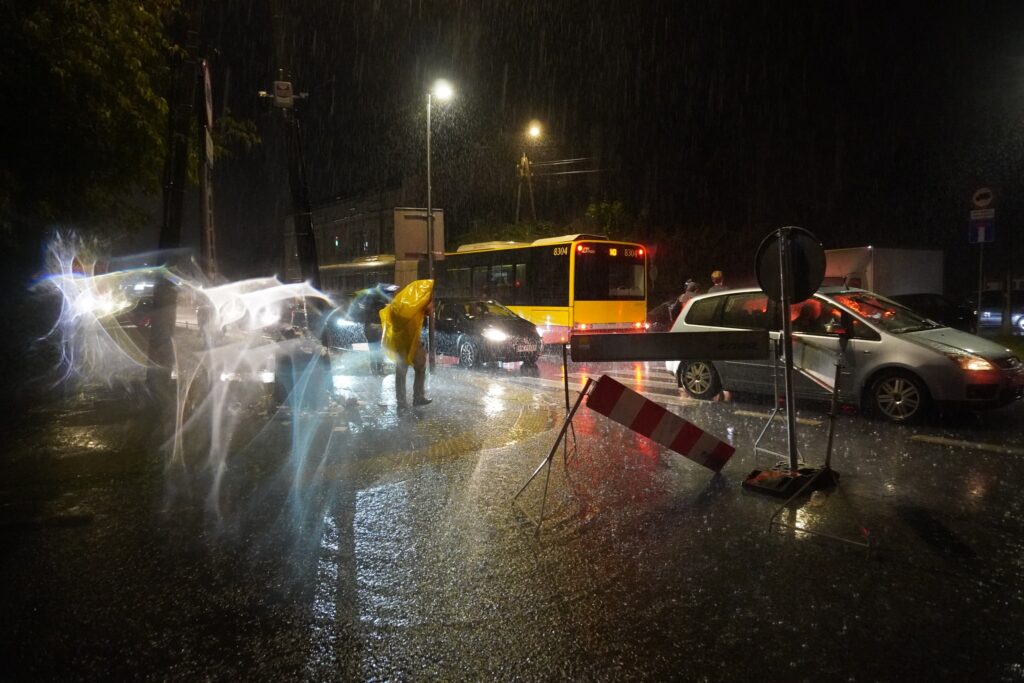 Midtvejs i den timelange koncert, blev My Słowianie fremført i silende regnvejr. Her lød det bl.a.: