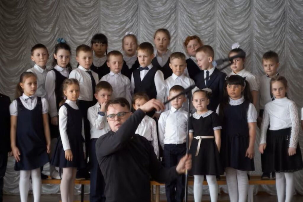 Anmeldelse af MR. NOBODY AGAINST PUTIN (2024) af David Borenstein. Filmen er baseret på en skolelærers optagelser af skolesystemet i Rusland.