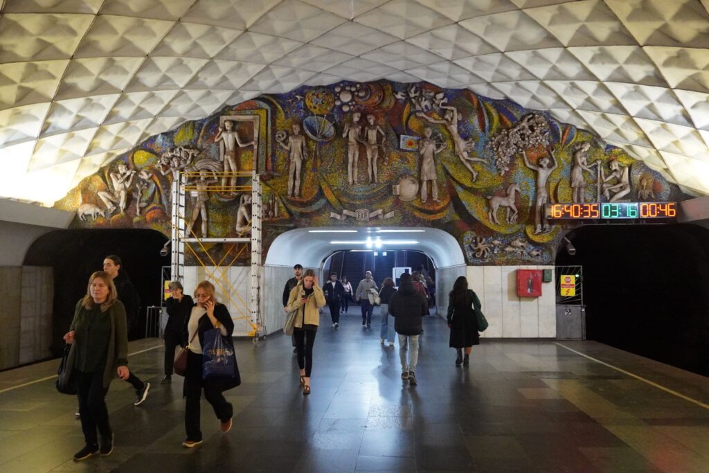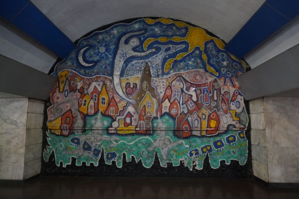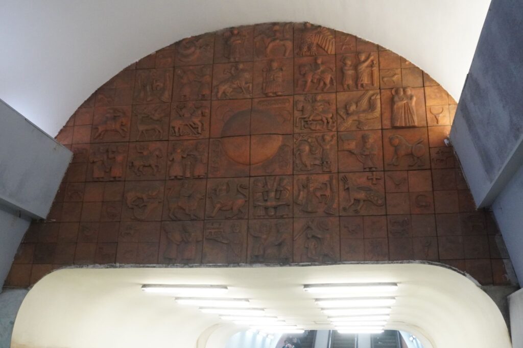 I stationen kan man se en stor mosaik som er lavet af Avtandil Gurgenidze. Kunstværket illustrerer nattelivet, og de tog som bevæger sig under byens overflade.