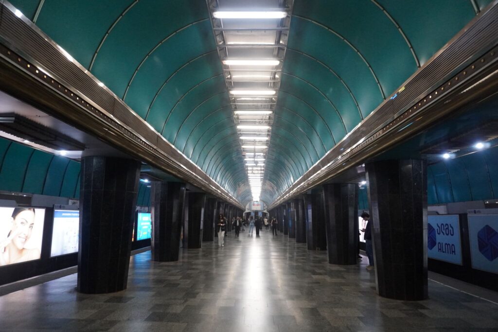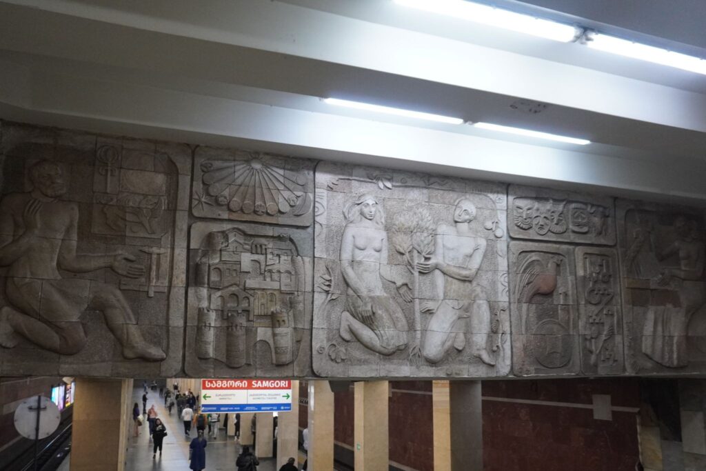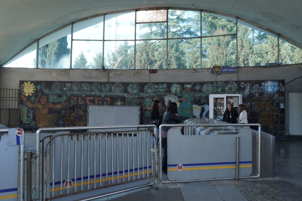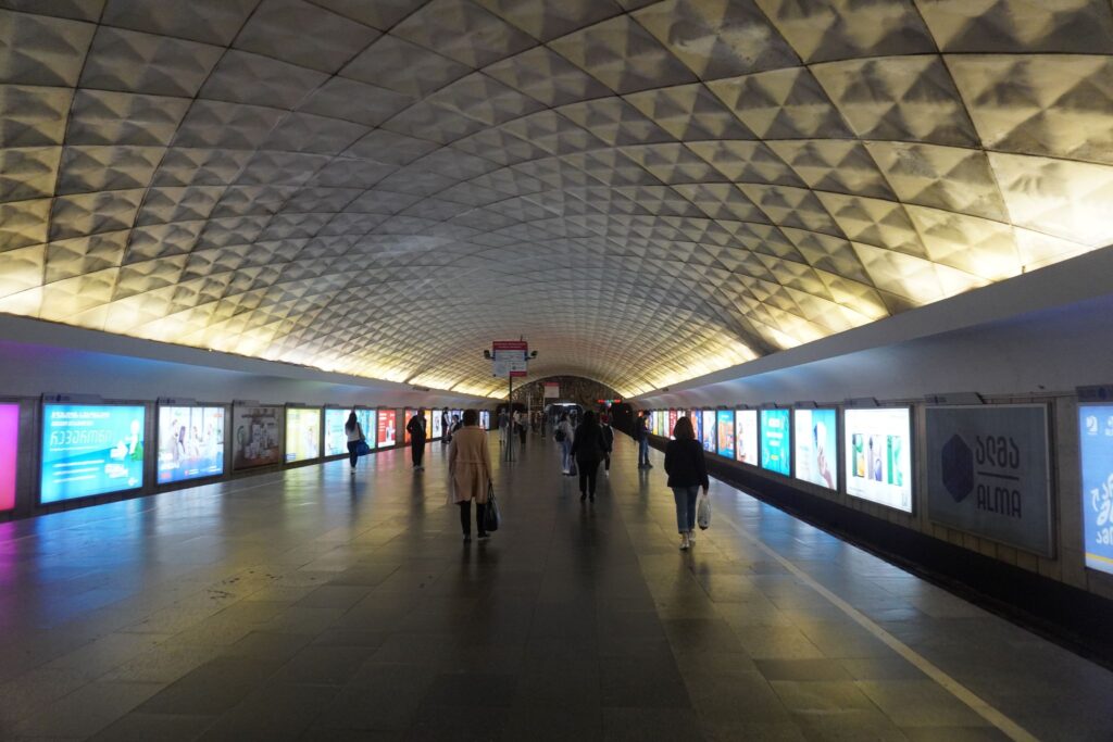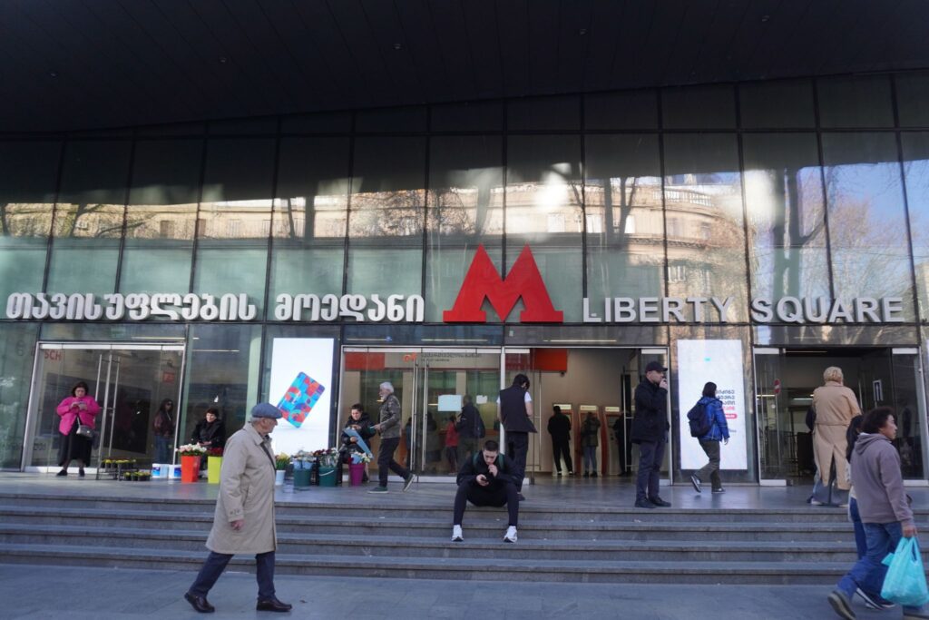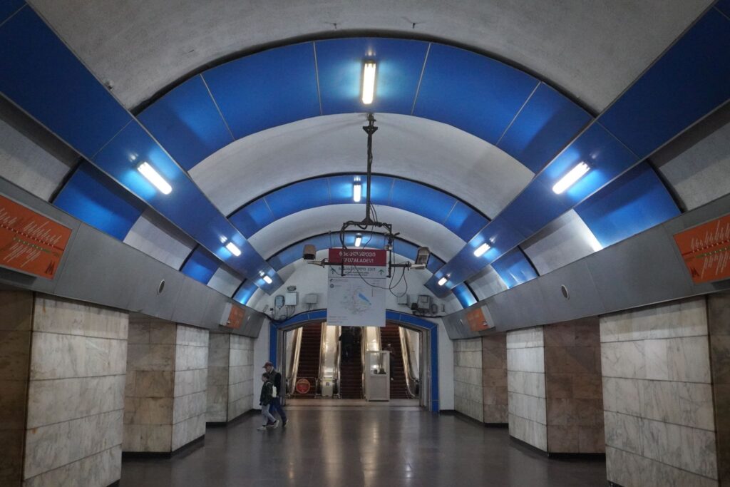Metrostationen ved Frihedspladsen hed tidligere Leninpladsen. Stationen ligger i hjertet af Tbilisi langt under jordens overflade.