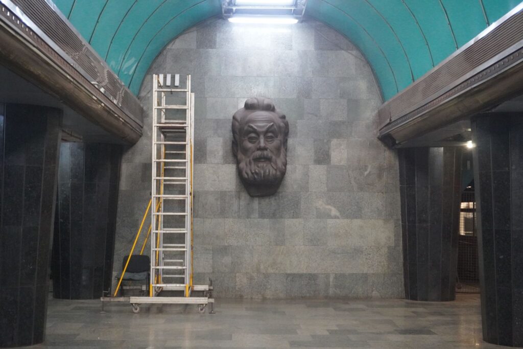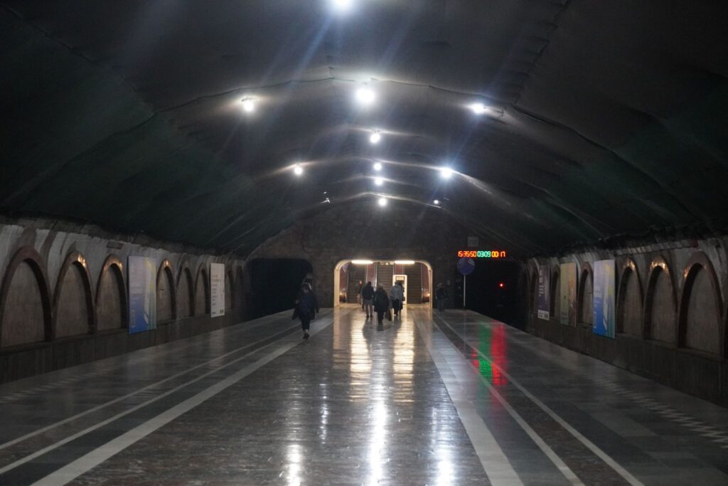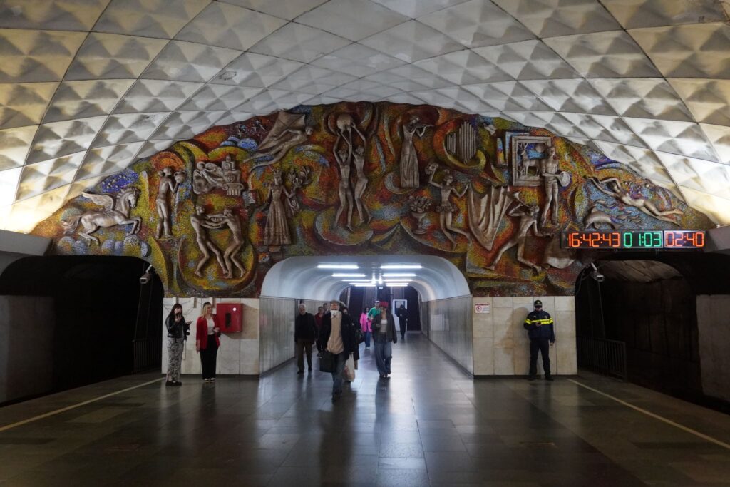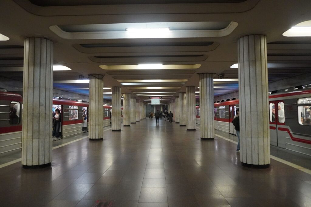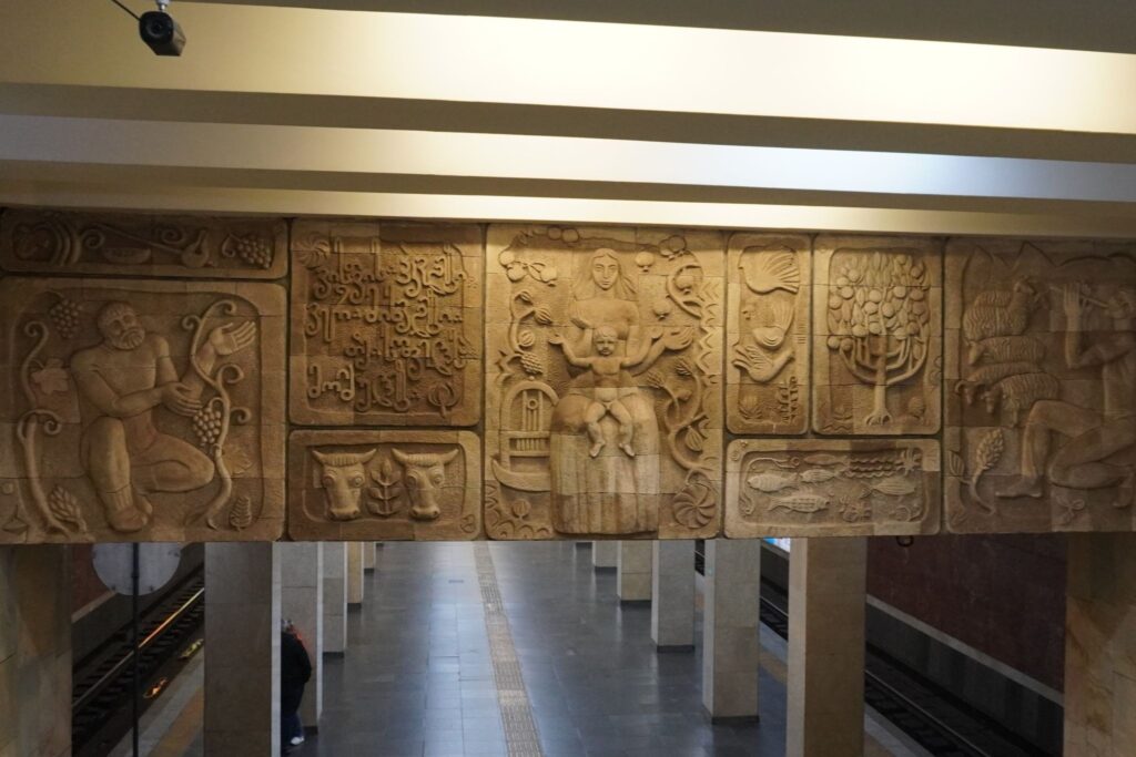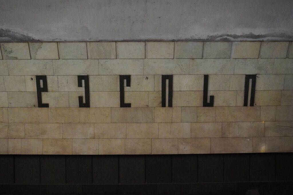 Metrostationen ved Frihedspladsen hed tidligere Leninpladsen. Stationen ligger i hjertet af Tbilisi langt under jordens overflade.