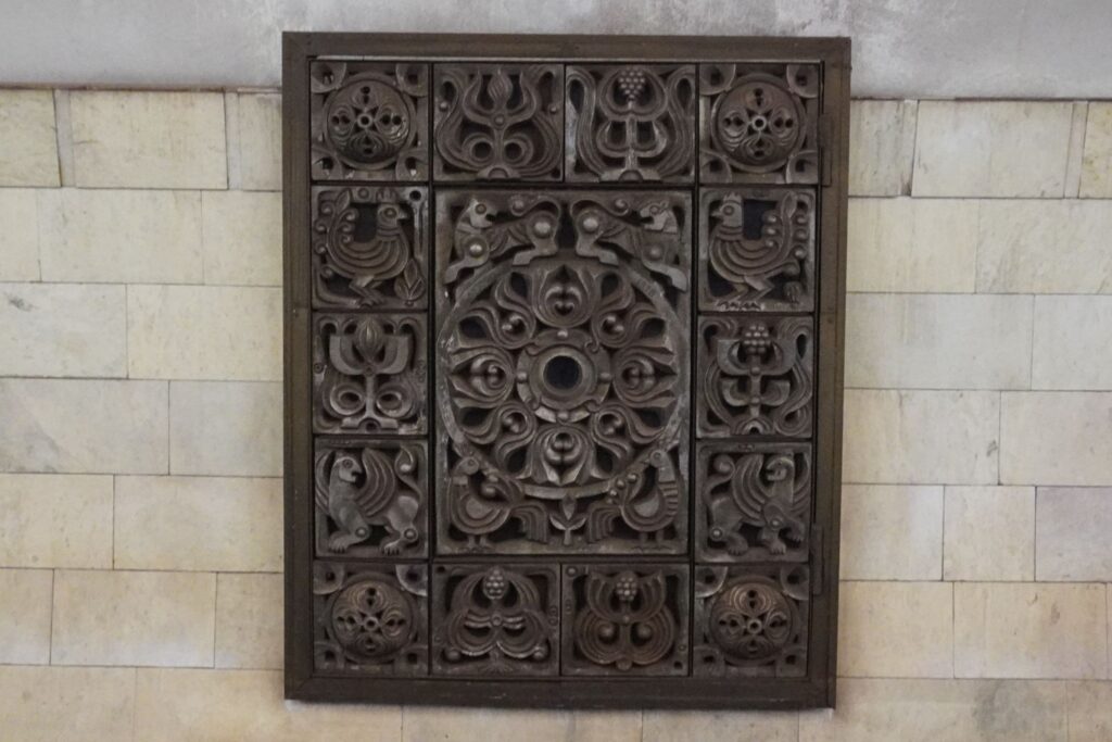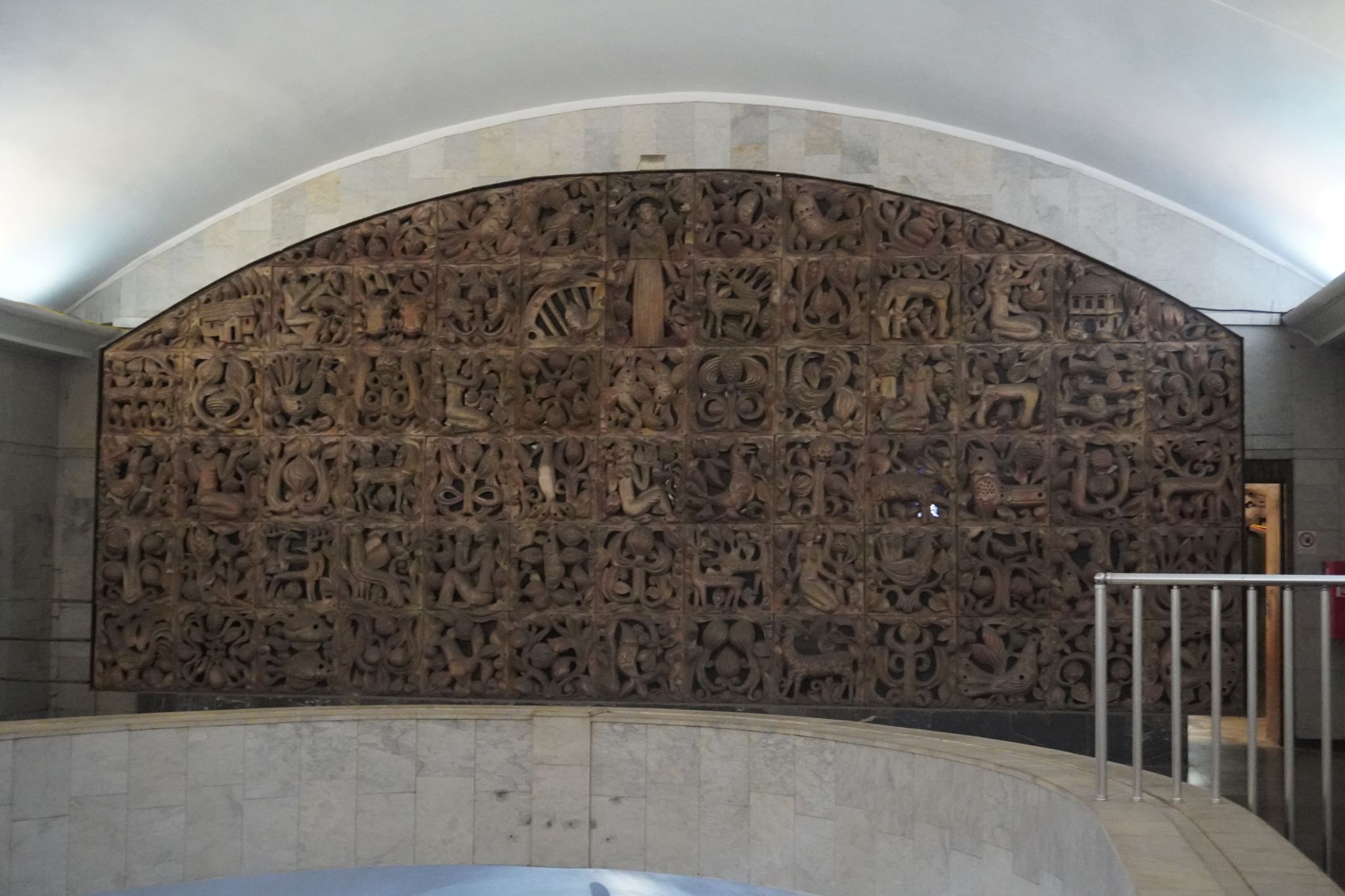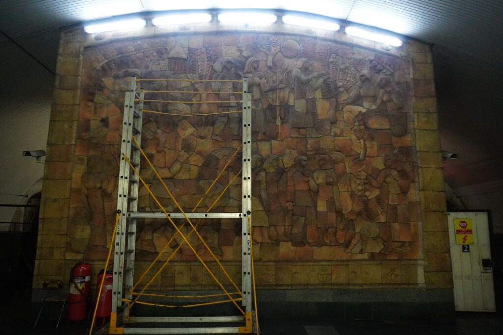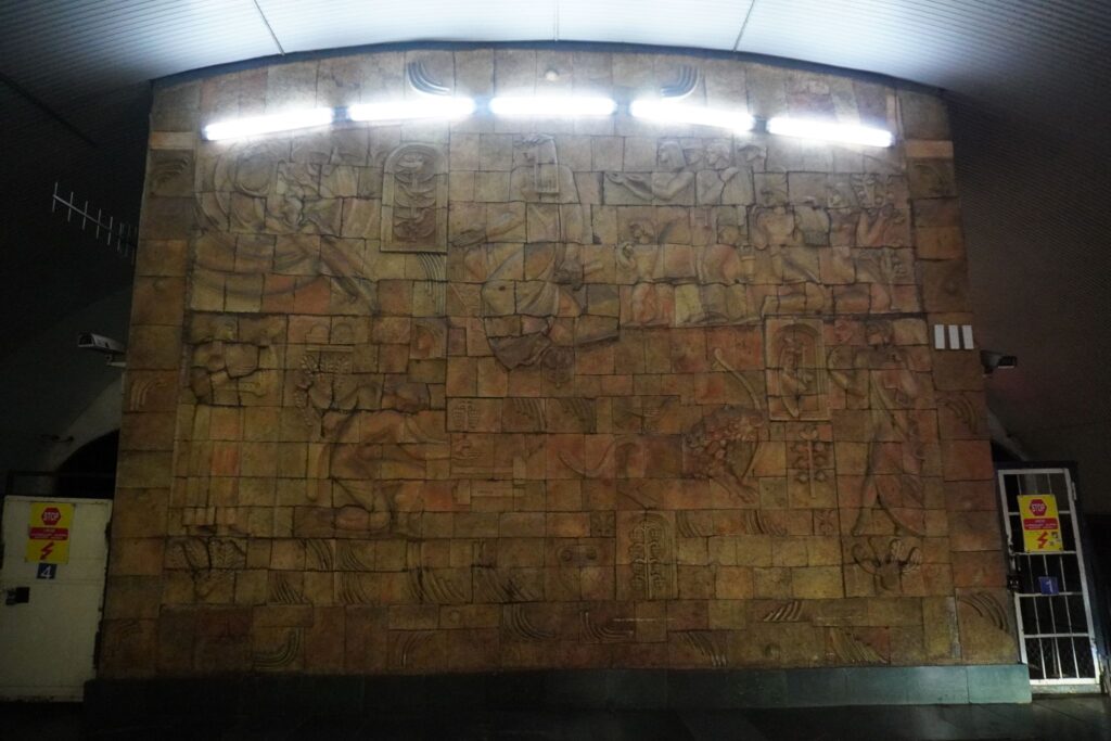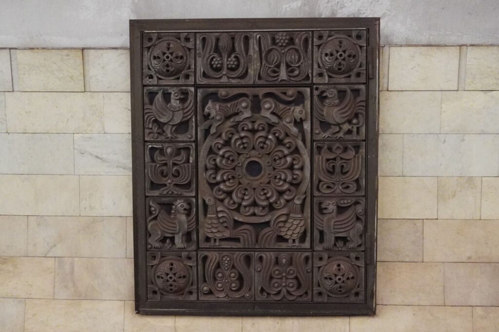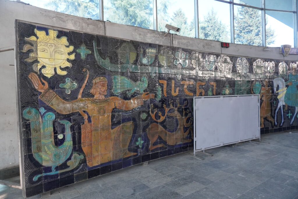I forhallen kan man se en stor mosaik, som i sin tid da stationen var under opførelse blev udarbejdet af S. Koiava.