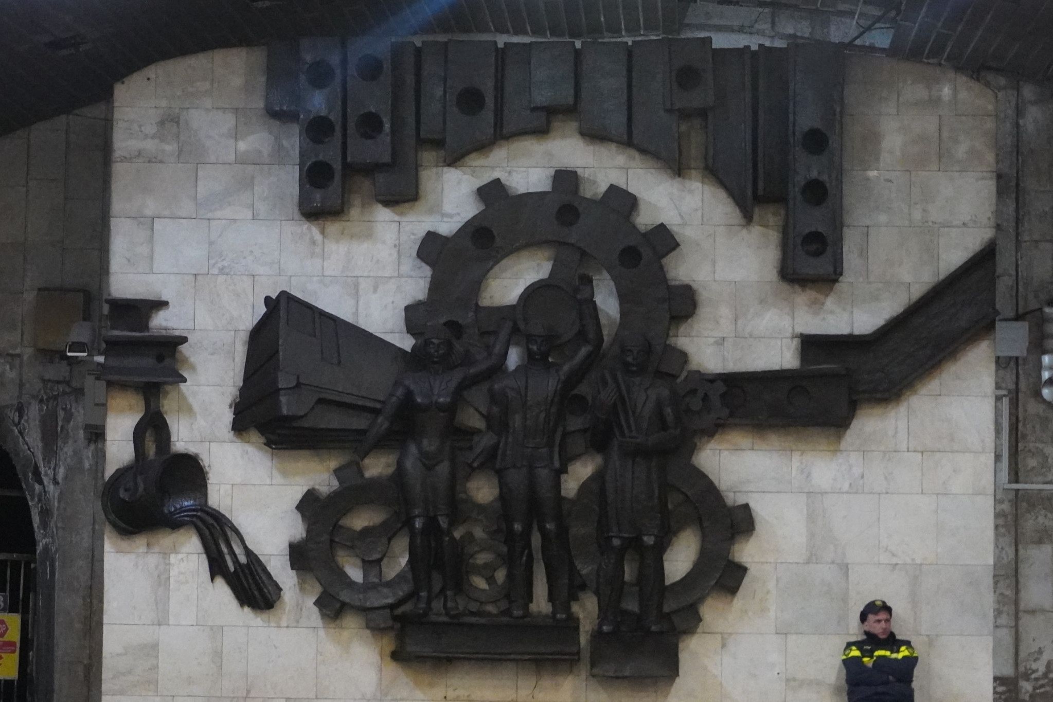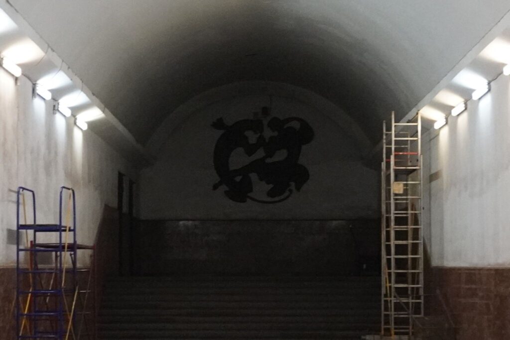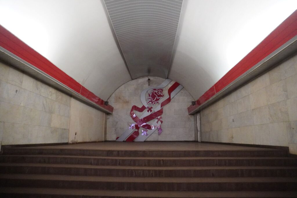Udsmykningen fremstår derfor af samme grund mere tidstypisk, end mange af de andre på metrostationen som stadig refererer til sovjettiden.