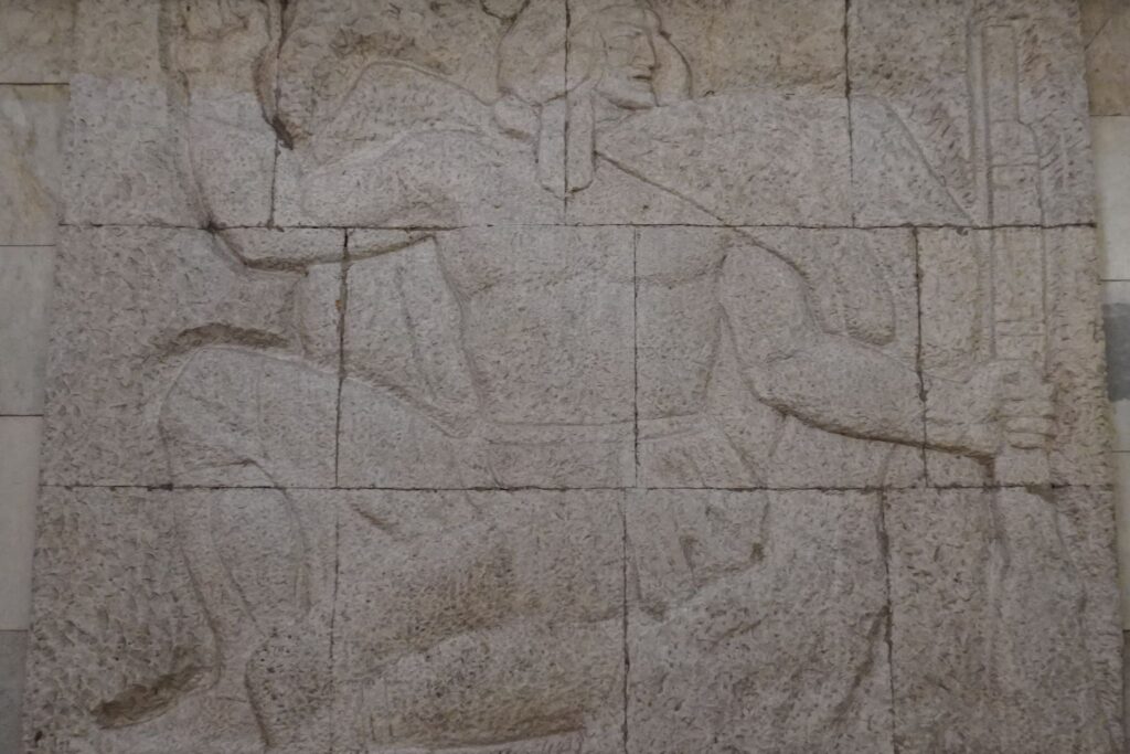 I metrostationen kan kan se et stort kunstnerisk værk af skulptørerne T. og G. Gigaurs som beretter om den heltemod de 300 aragvere besad, da de alle gik i døden for sagen.