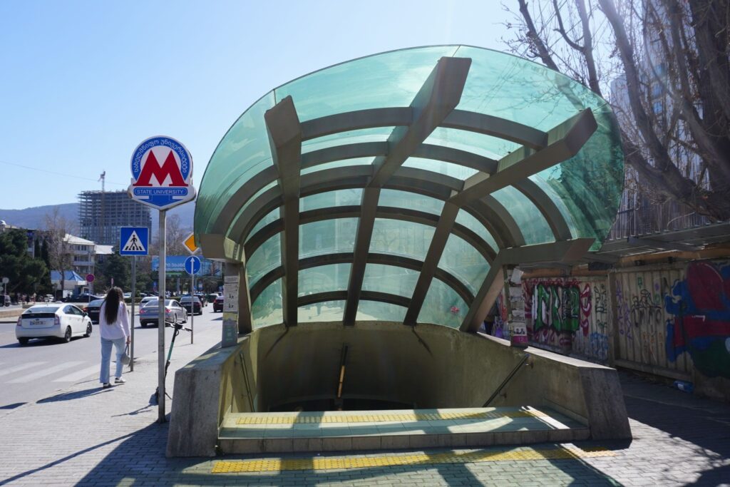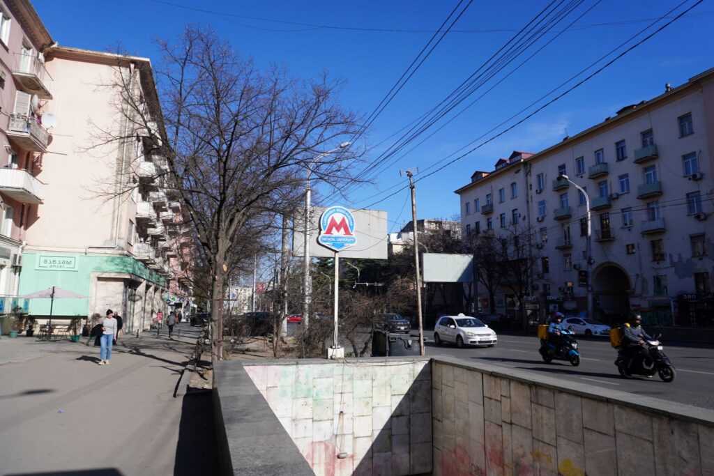 Langs Tbilisi anden metrolinie ligger Medicinsk Universitet fra 1979, efter oplæg af arkitekterne G. Modzenishvili, N. Lomidze and D. Iosava.