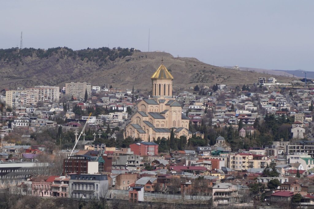 I det fjerne kan jeg se Treenighedskatedralen, der blev bygget mellem 1995 og 2004. Det er den tredjehøjeste østlige ortodokse katedral i verden og en af de største religiøse bygninger i verden målt i alt areal.