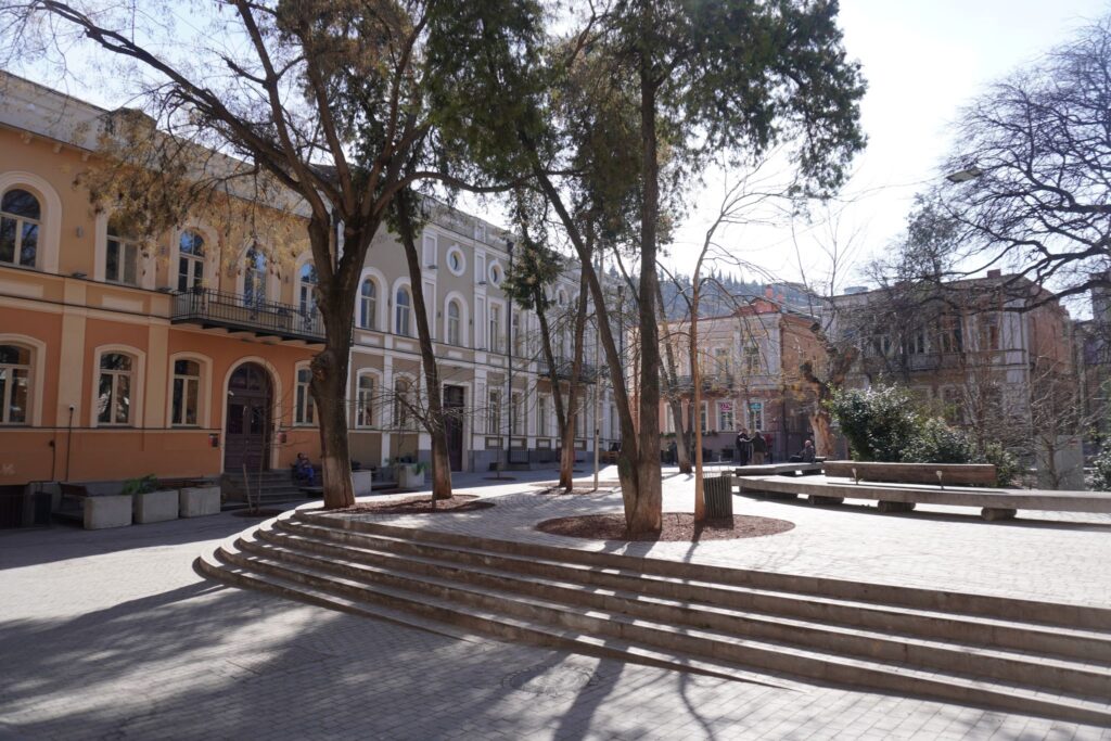 På pladsen blev der stillet bænke op på det gamle torv, så Tbilisis beboere og besøgende udefra, kunne få et bedre udsigt til arkitekturen på dette historiske sted.