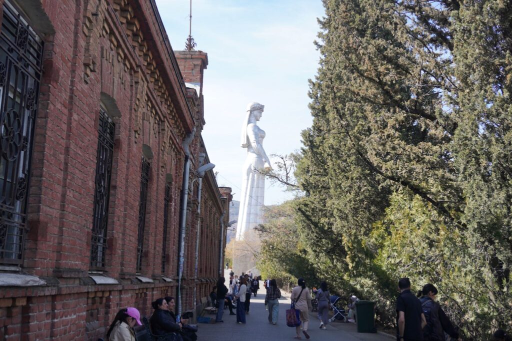 På den smalle Sololakigade på toppen af Sololaki-højen, er det første man ser, efter at have passeret souvenirsælgende, det store Georgiernes mor monument.