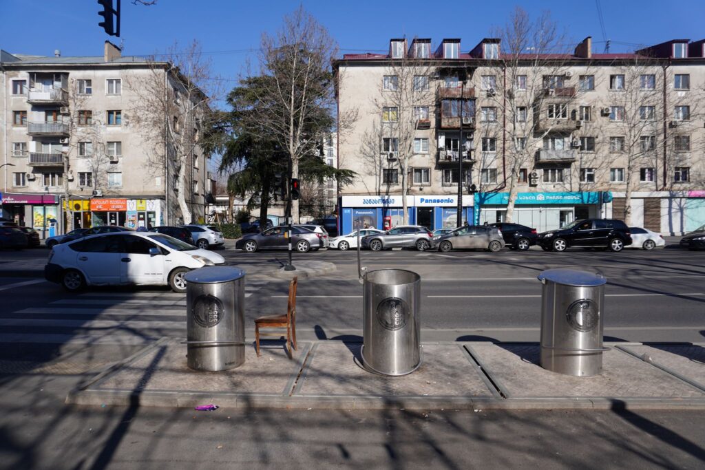 I de bedre dele af Tbilisi var der installeret et affaldssystem, der gjorde at affaldet ikke hobede sig op på stræder og gader.