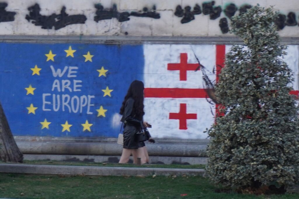 Nu om dage, så er det Vladimir Putin som prøver at styre Georgien fra Moskva. Den russisk-georgiske krig fra 2008 er langt fra glemt i Tbilisi. Og på murene rundt omkring i Tbilisi kan man se mange tegninger hvor han bliver sammenlignet med Adolf Hitler.