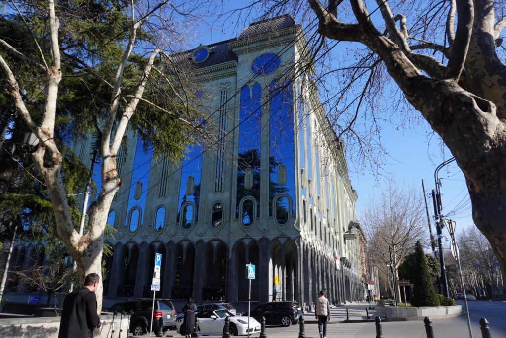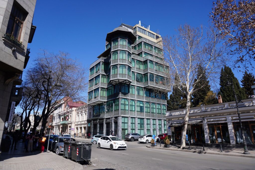 Nær Rustaveli metrostationen findes der nogle markante museer. Blandt andet denne store og høje grønne bygning som er tilegnet kunst.