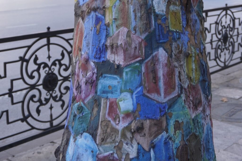 Gadekunsten er meget fremtrædende i den georgiske hovedstad. Her kan folk også se det på et af træerne i byen.