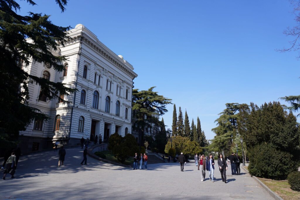 Og i hovedbygningerne for Tbilisi universitet var alle bygninger istandsatte og de unge studerende gik i afslappet, men finere tøjbrug, end mange af deres landsmænd.