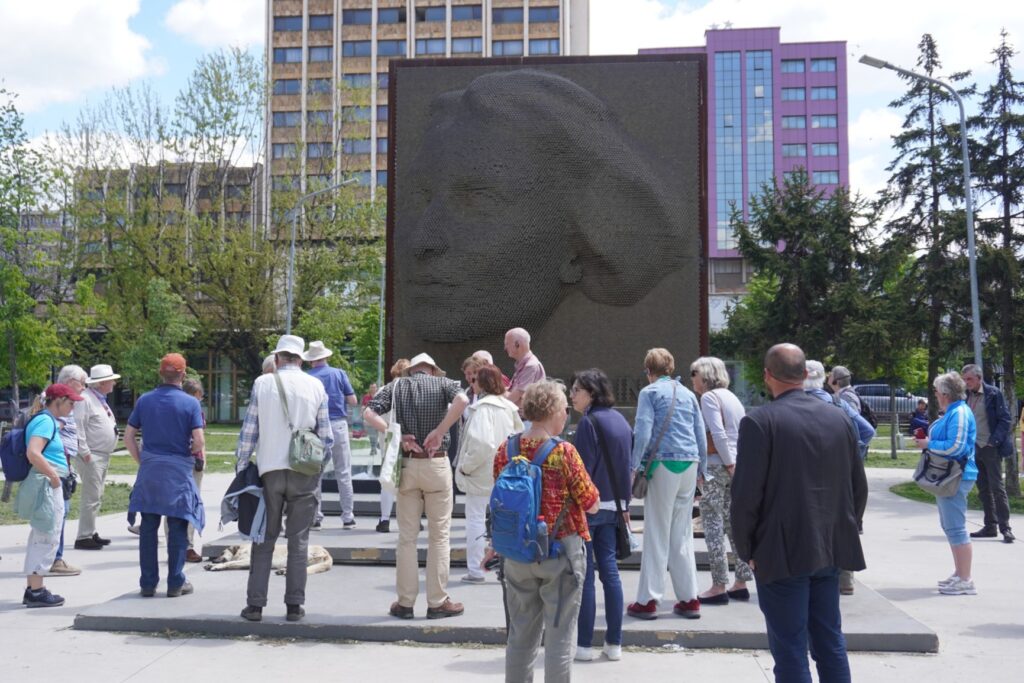 Og, over på den anden side af vejen, kan man se skulpturen ”Heltinder”, som er en hyldest til de ca. 20.000 kosovo-albanske kvinder som blev voldtaget af soldater i den serbiske hær under krigshandlingerne som fandt sted i 1998-1999 i Kovoso.