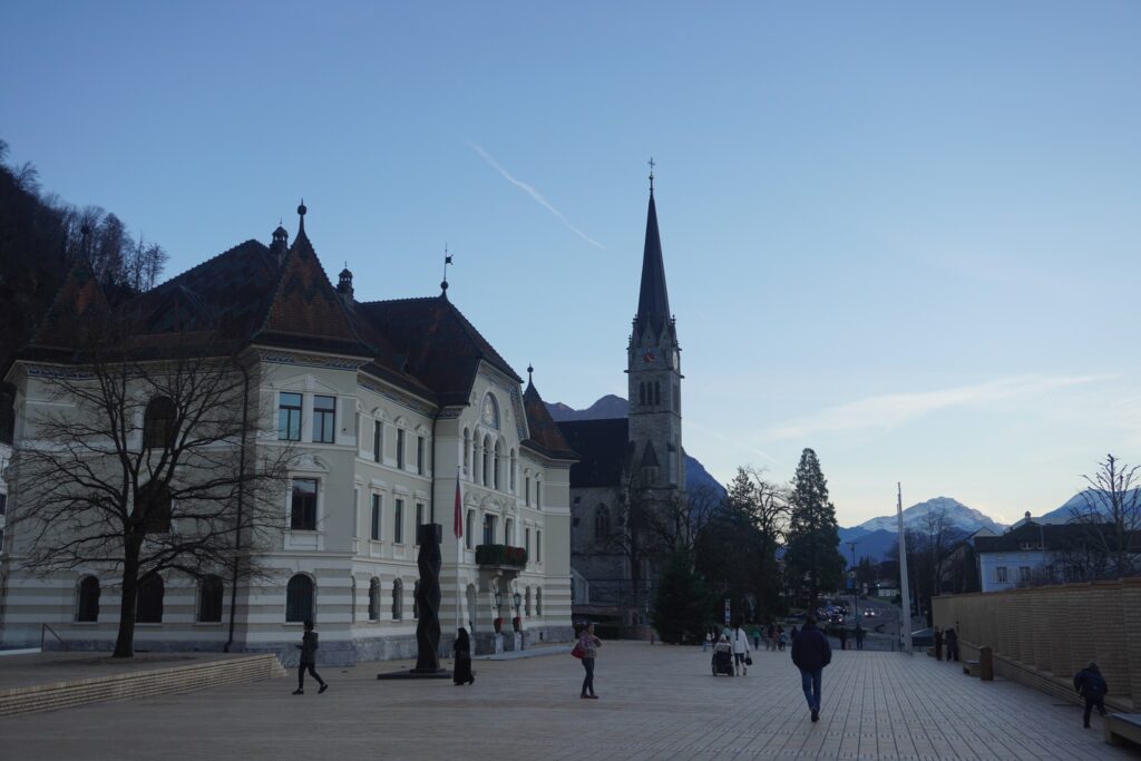 Jeg ankom til hovedstaden Vaduz sent om eftermiddagen, efter at have rejst med tog fra Zürich til Sargans, og derefter den sidste stykke vej med bus ind i Liechtenstein.