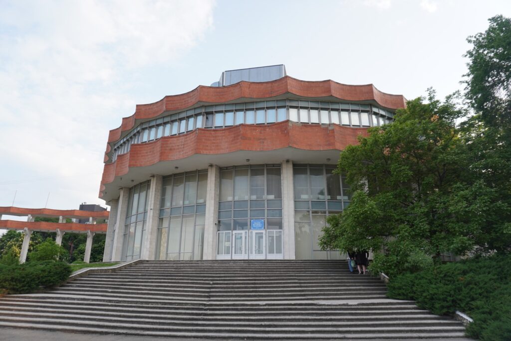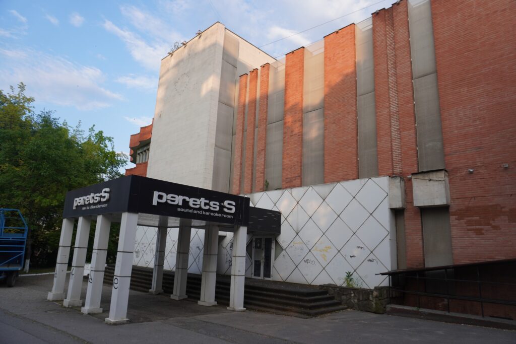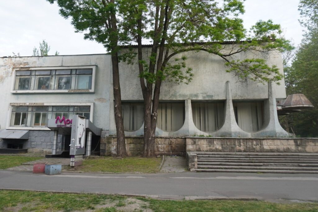 Den modernistiske bygning, som oprindelig skulle huse en restaurant, blev tegnet af V. Kudinov og V. Zakharov og stod færdig i 1969.
