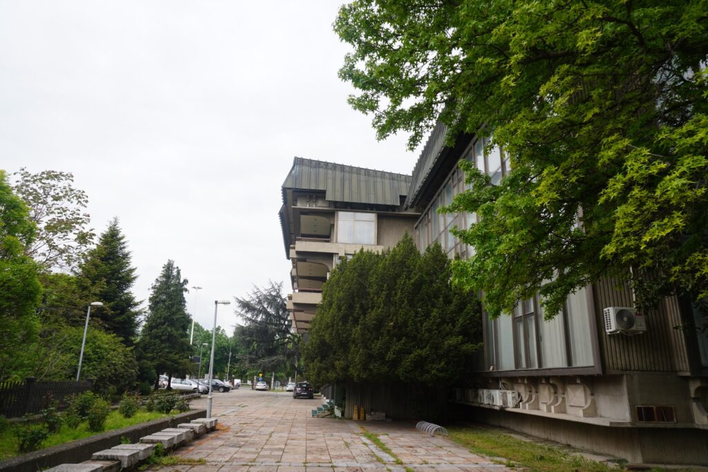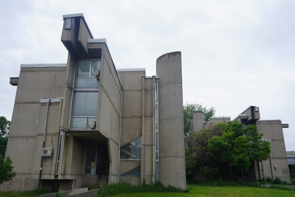 Janko Konstantinov har sat sit fingeraftryk i den nordmakedonske hovedstad. Da han har tegnet mange brutalistiske bygninger, der i blandt denne skole for medicinstuderende.