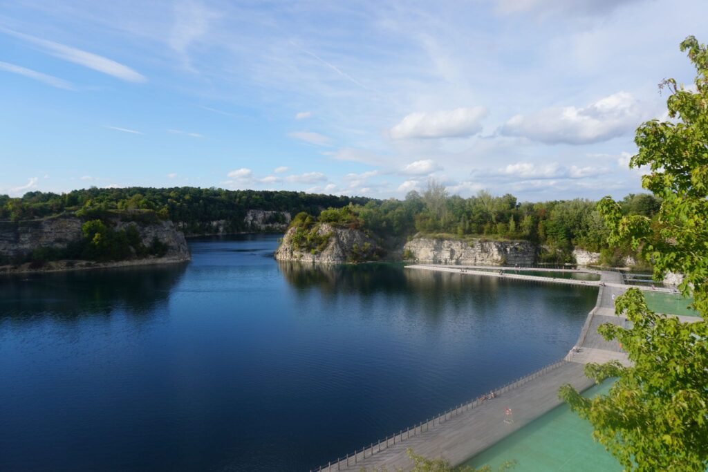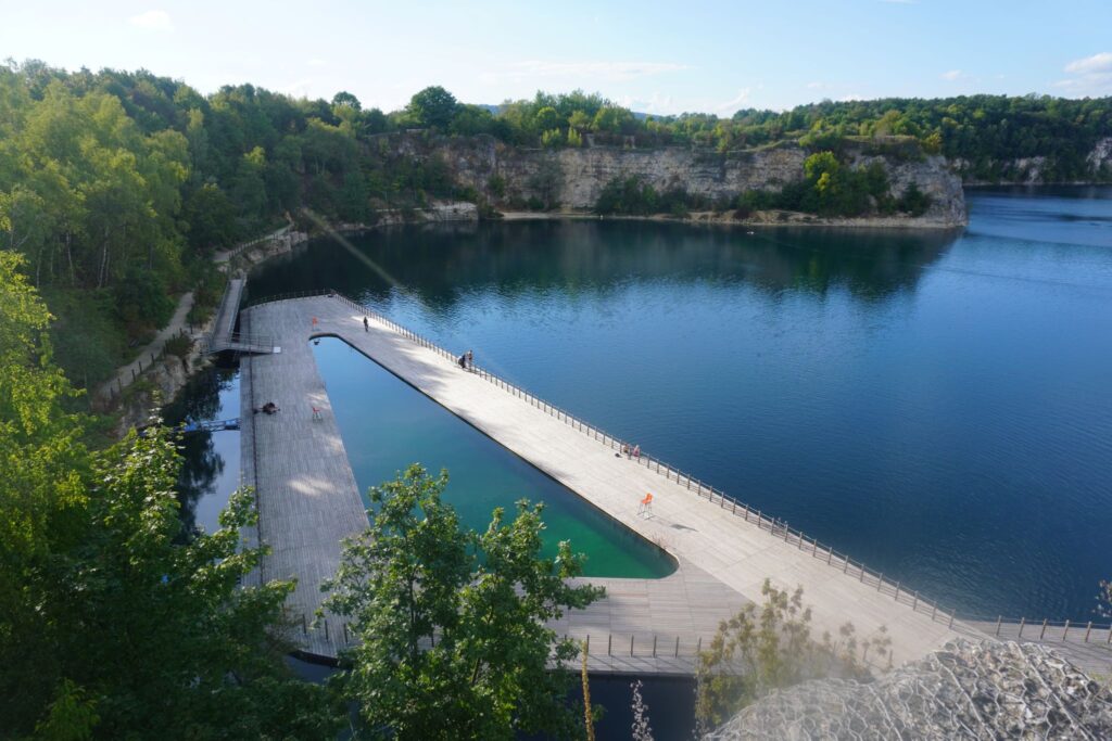 Søens farve er turkis pga. de kalkstensforekomster, der engang blev udvundet her. Og, det er muligt at komme i vandet for både voksne og børn, da vandstanden varierer fra 40 cm til 3.50 meter ved de kunstigt anlagte badebroer.