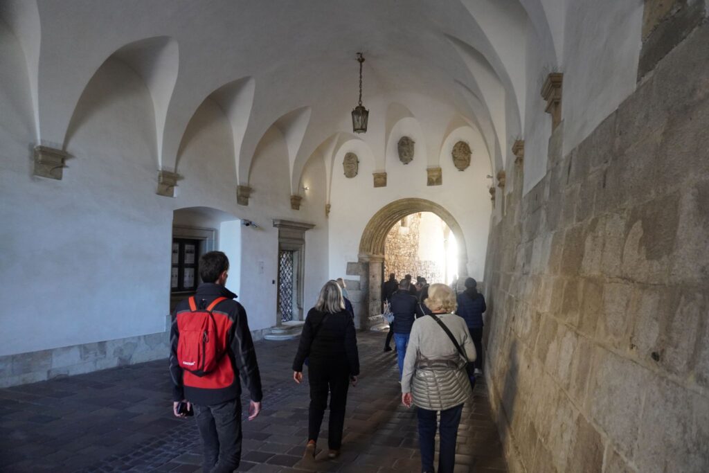 På vej mod slottet er der forskellige symboler hængende på endevæggen, som blandt andet viser Polens og Litauens våbener.