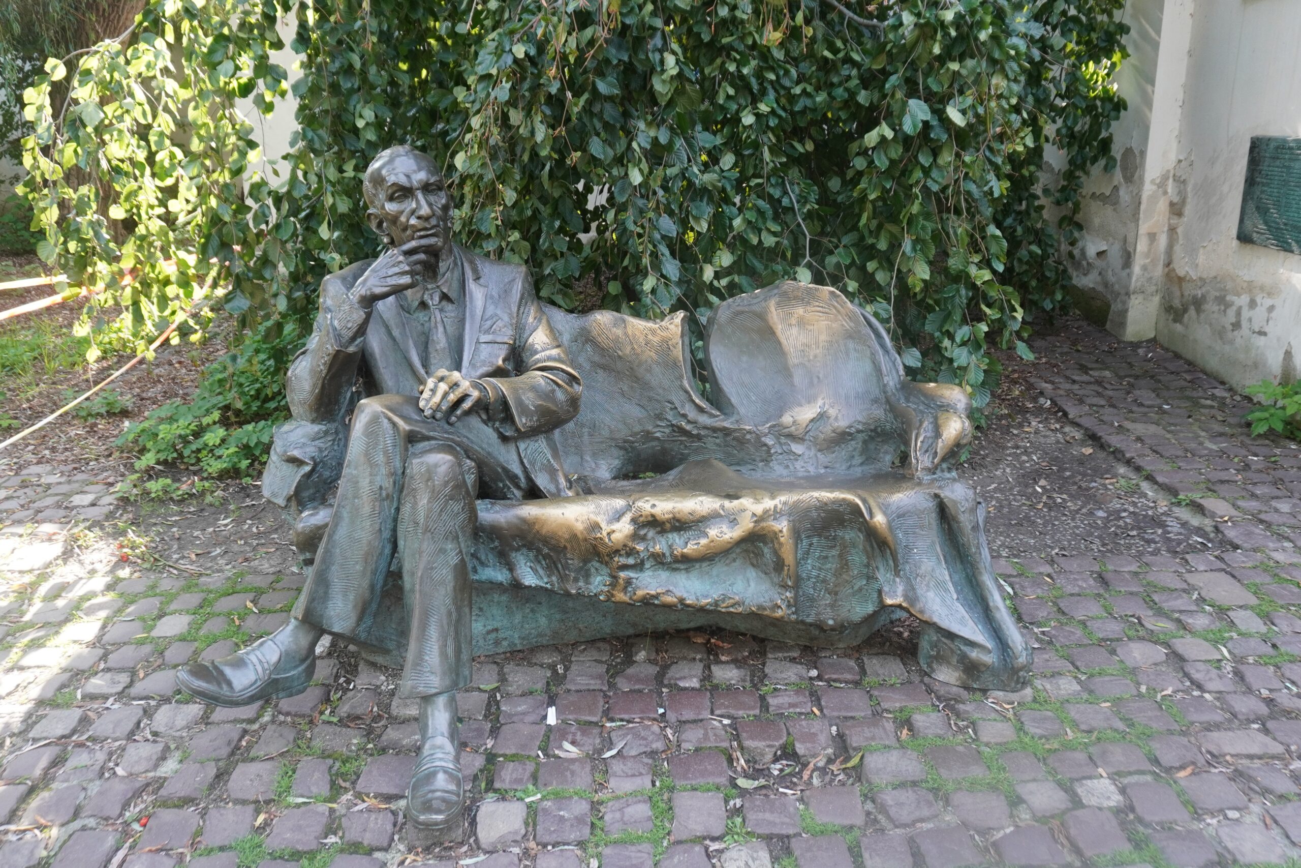 Skulpturer portrætterende den polske diplomat Jan Karski siddende på en bænk eller i en lænestol kan man se mange steder i Polen. også i Krakow.