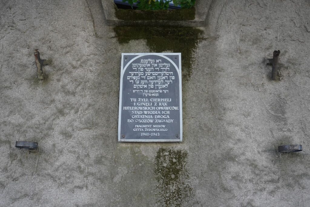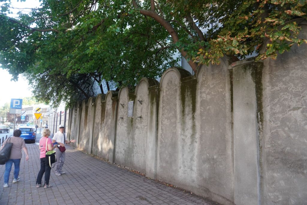 Det er stadig muligt at se en lille brudstykke af muren som omkransede Den jødiske getto i nærheden af Plac Bohaterów Getta.