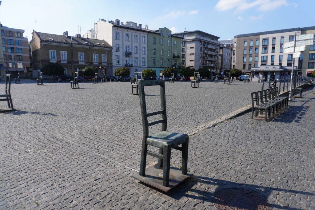 På Gettoheltepladsen i Krakow ærer man de jøder som boede i Den jødiske getto, og for mange endte med døden efter at de var blevet ført væk derfra.