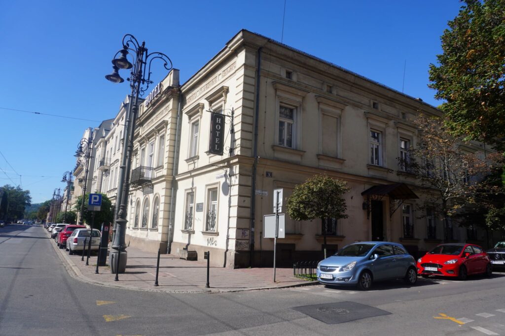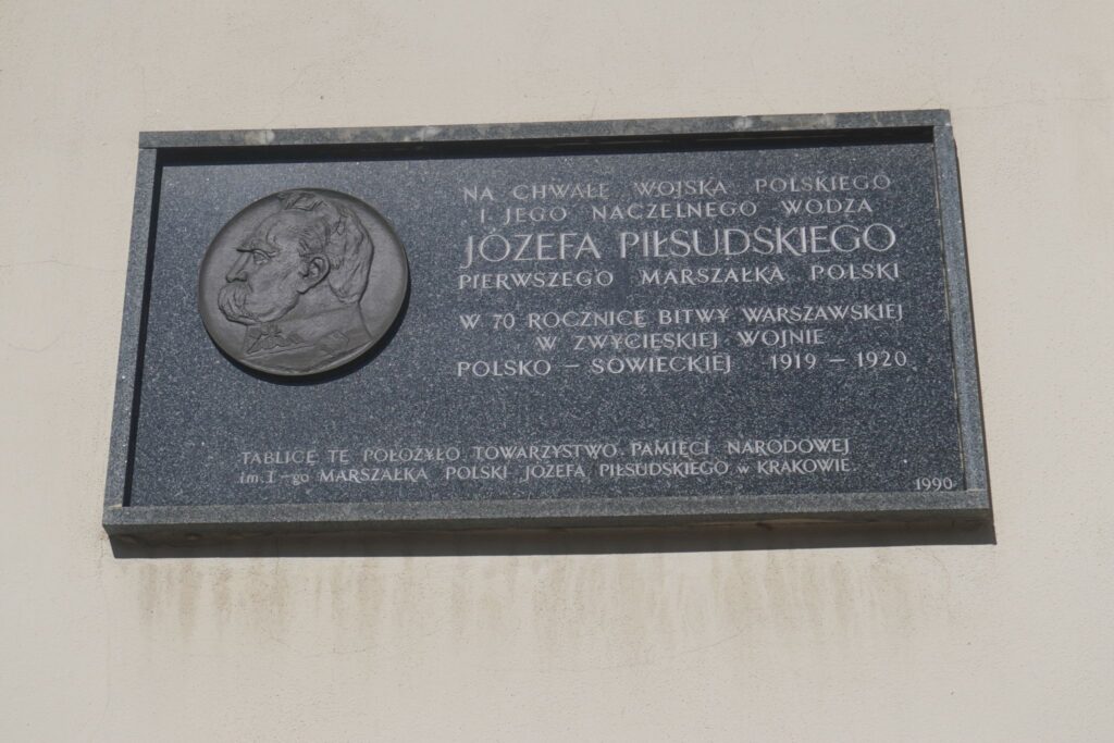 Længere nede af Józef Piłsudski vejen kan man se et skilt som hylder ham som arkitekten for Polens uafhængighed.