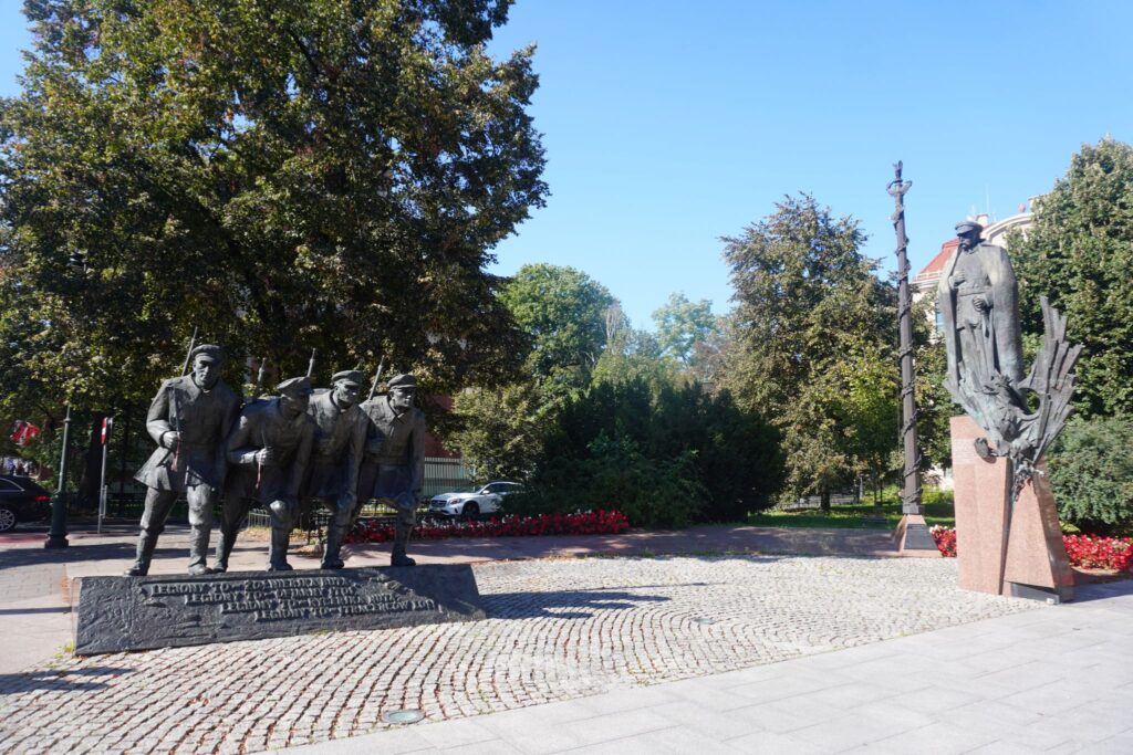 I de tilstødende gader kan man se et skilt som hylder Slaget ved Warszawa i 1920, hvor 5000 polske soldater slog 15000 sojvjetiske soldater, pga. marskalens militære strategiske evner.