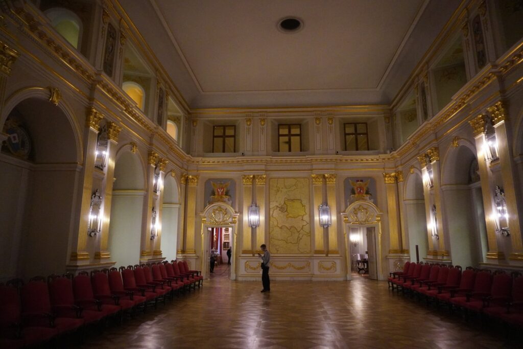 Det var i dette store bygningsværk, at et af verdenens første demokratier i nyere tid blev nedfældet den 3. maj i 1791. Forfatningsskrivelsen kan ses inde i den store sal, hvor det blev til.
