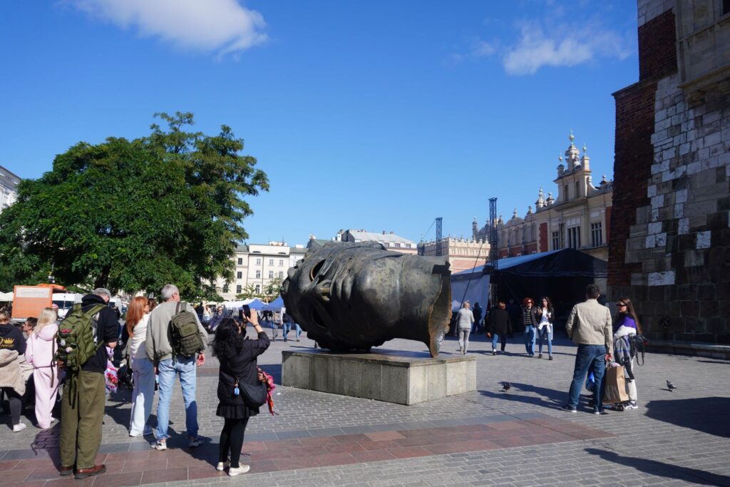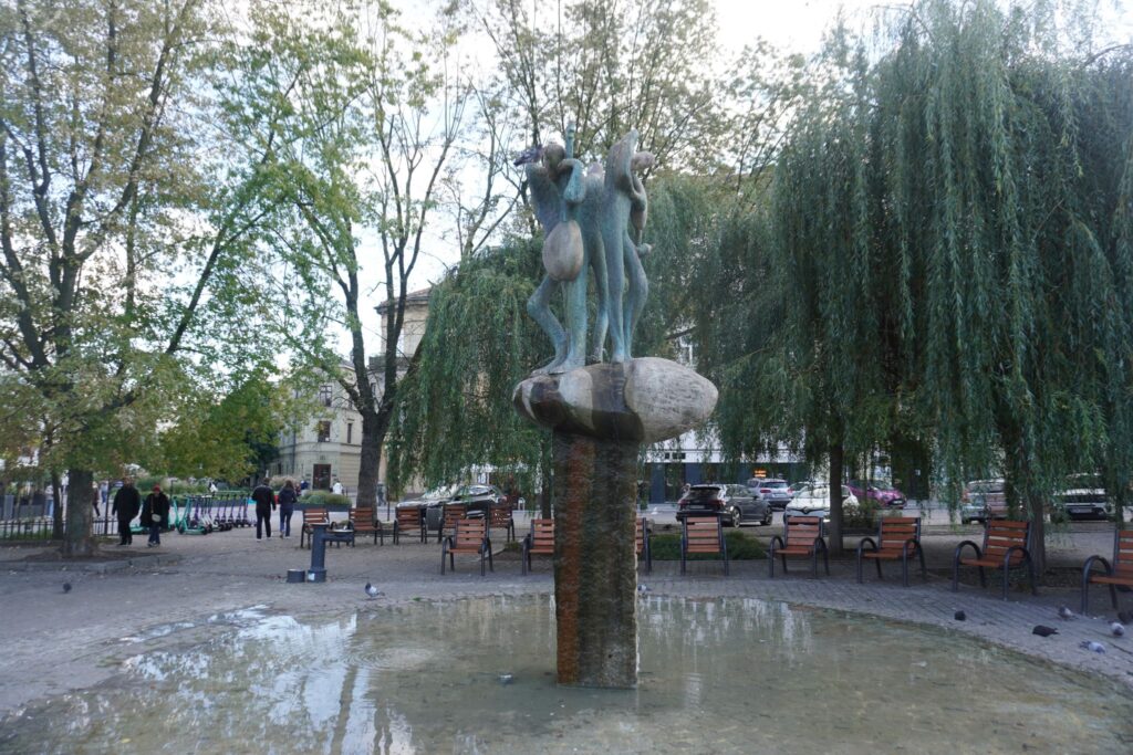 Rundt omkring i Krakow kan man se forskellige skulpturer og mindesplader som hylder kunsten.