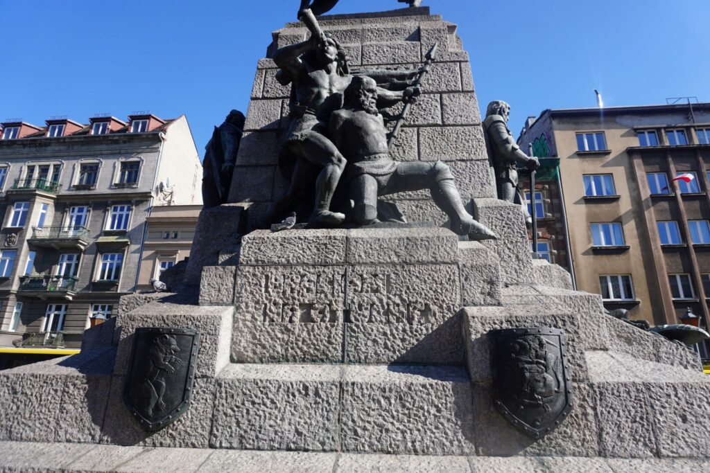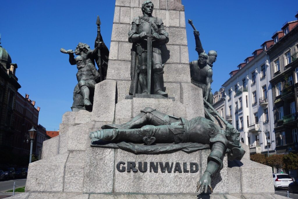 I nærheden af fæstningsbygningen Barbikan er det et stort monument som markerer slaget ved Grunwald/Tannenberg i 1410.