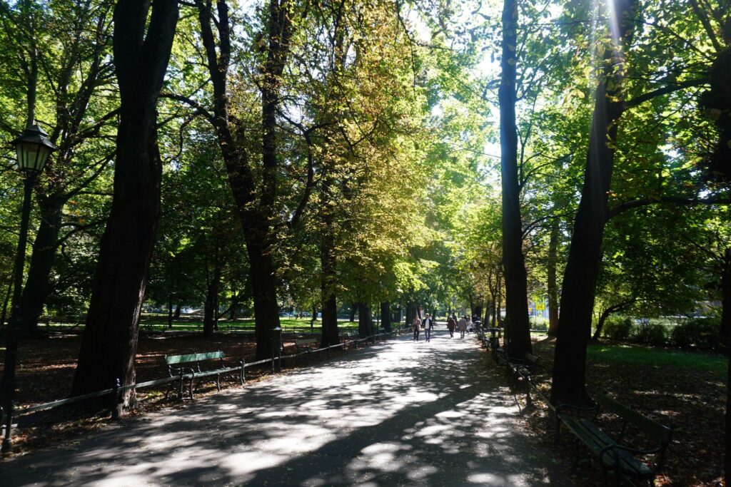 Rundt om Krakows historiske by er der en park, hvor mange folk til daglig færdes langs de gamle volde som omgav byen.