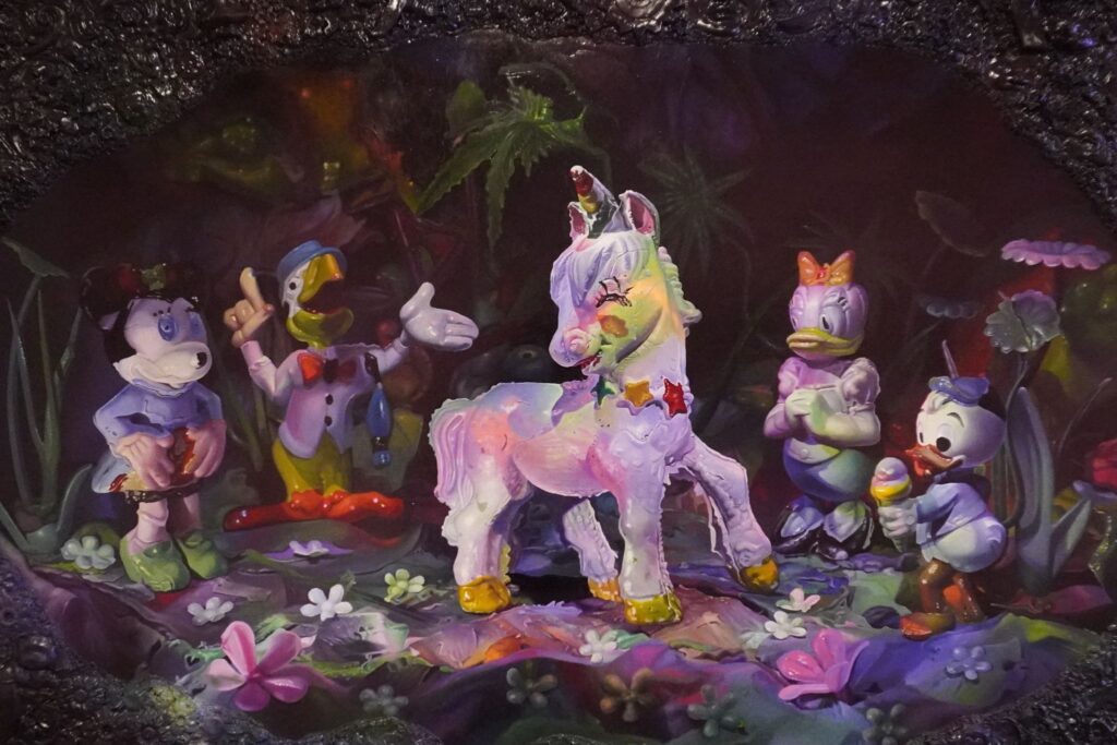 Når man træder ind i selve udstillingsbygningen, er det også refleksioner over tyverne hvori begreber som pandemi og krig spiller en stor rolle i folks hverdag.