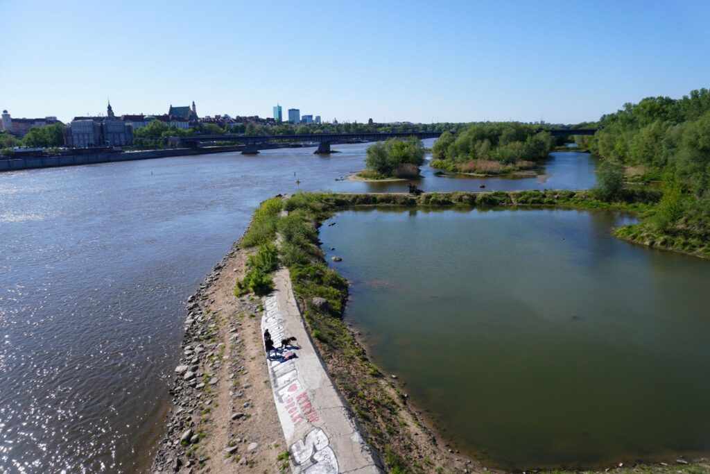 Noget som også er karakterisk for broen på Pragasiden er den går over det store parklandskab som findes på denne side af Wislafloden.