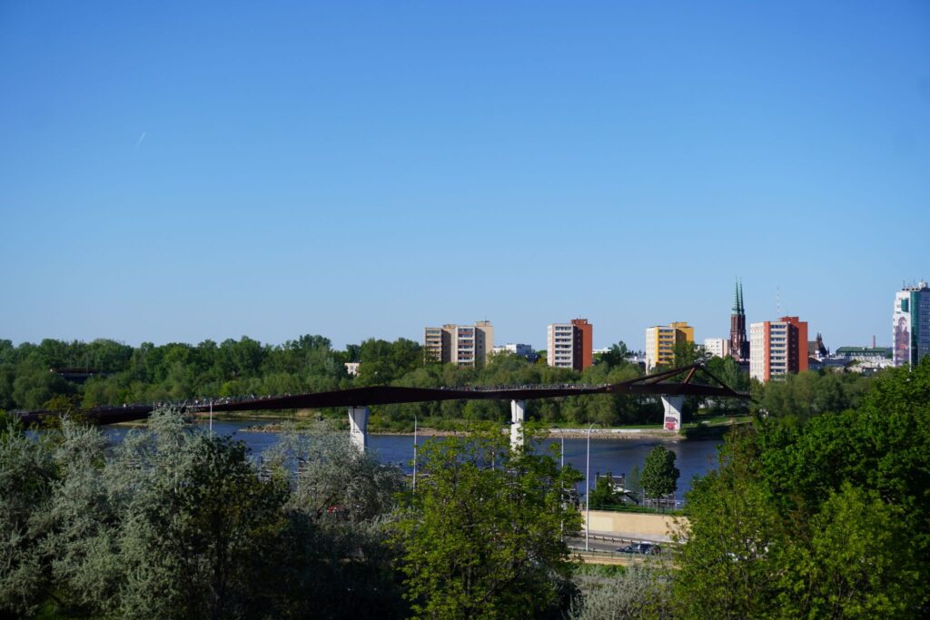 Til højresiden kunne jeg se den karakteriske Świętokrzyski bro, samt det store Nationalstadion i Warszawa, som blev lavet for at blive brugt til EM i Fodbold i 2012.