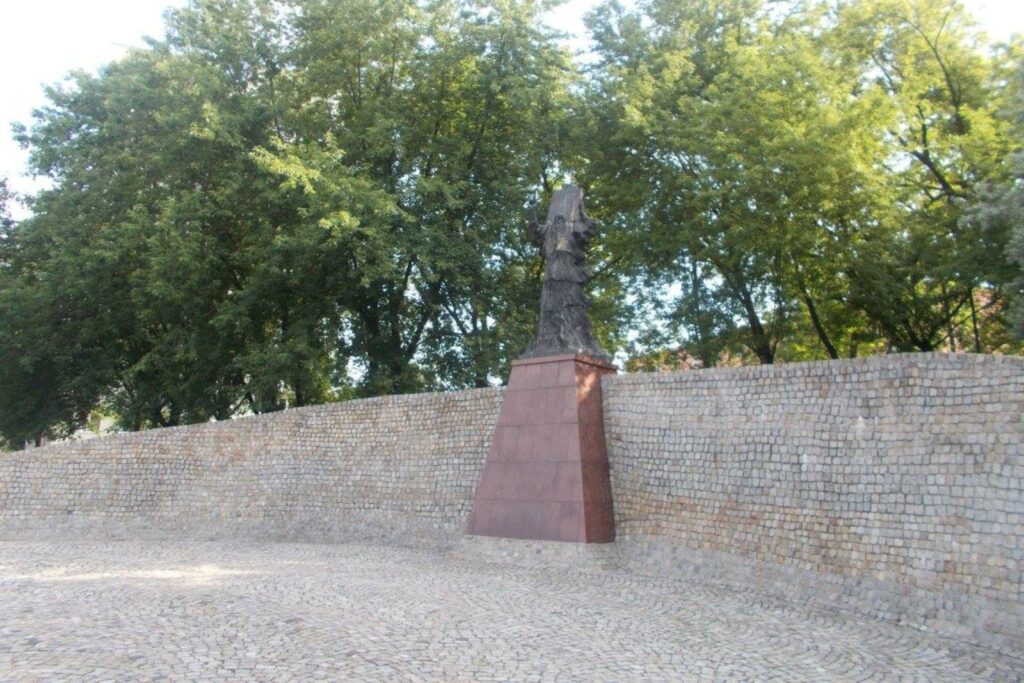Monumentet, der er designet af Kazimierz Gustaw Zemłablev blev indviet i 1995. Det viser Moses, der holder tavlen med de ti bud,.