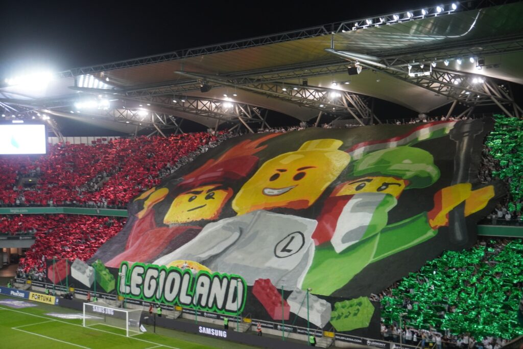 På den var der nogle LEGO-mænd som var iført Legias dragter. Og teksten lød LEGIOLAND, som de polske hardcore fans i dagens anledning, havde døbt deres hjemmebane.